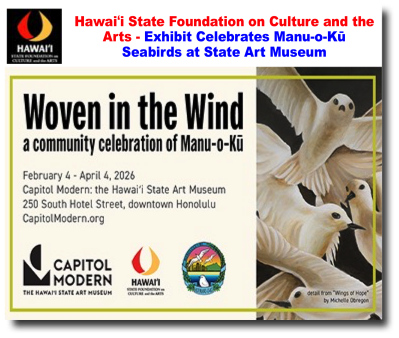 The Hawaiʻi State Foundation on Culture and the Arts (SFCA) announces a new exhibit at Capitol Modern: the Hawaiʻi State Art Museum. The “Woven in the Wind”, a collaboration with Hui Manu-O-Kū, is open through April 4, 2026. - Hawaiʻi State Foundation on Culture and the Arts - Lee A. Tonouchi Hawaiʻi State Poet Laureate 2026-2029