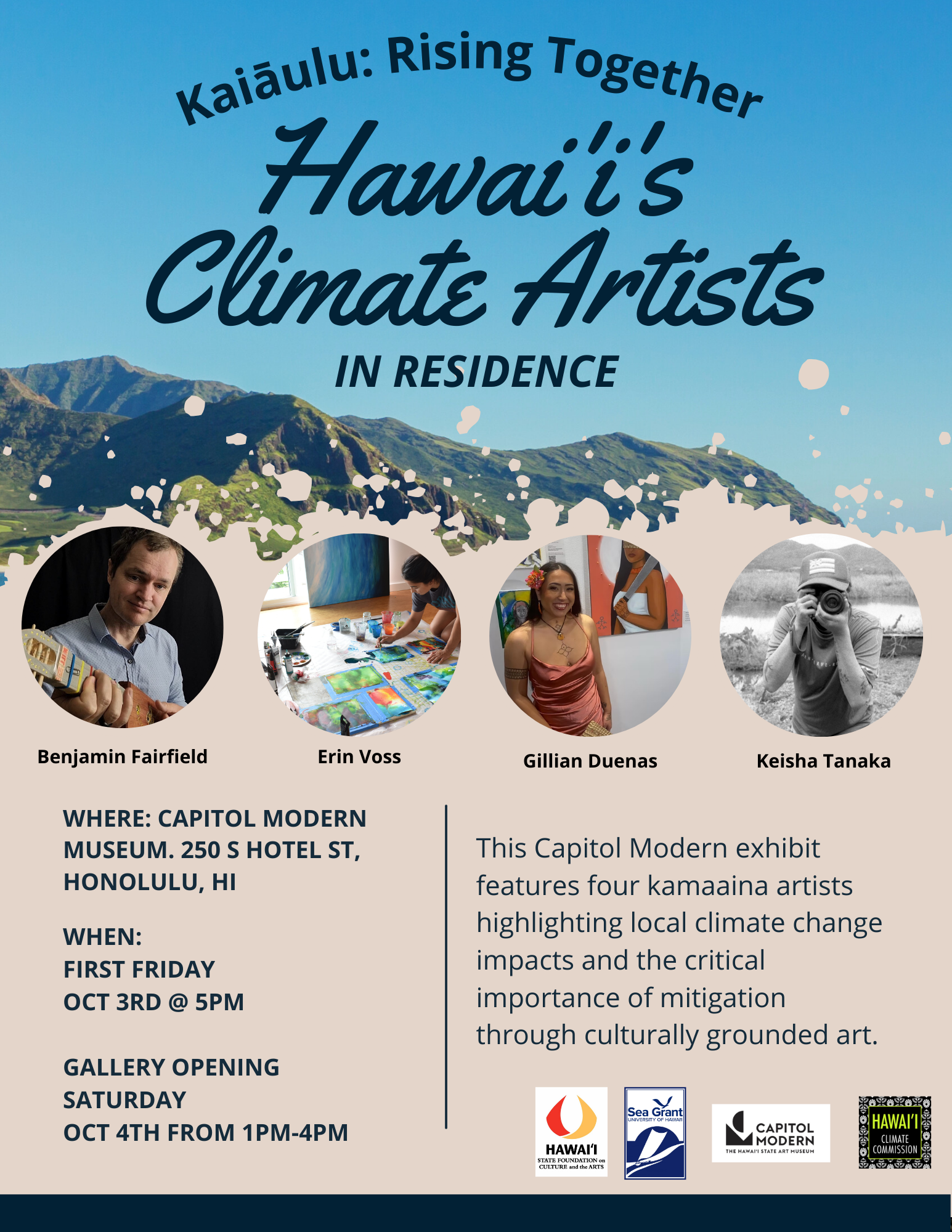 • “Kaiāulu: Rising Together” Hawaiʻi Climate Artists in Residence exhibit artist reception Saturday October 4, 1:00 - 4:00 p.m.
